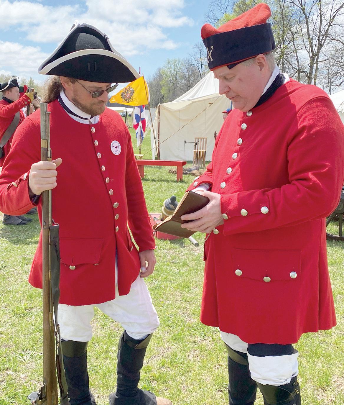 ROYAL AMERICANS — Steven Faust, left, and Nigel Kohler of the 60th Royal Americans are shown at the Fulton County Historical Society’s Redbud Trail Rendezvous outside Rochester on Saturday, April 26.