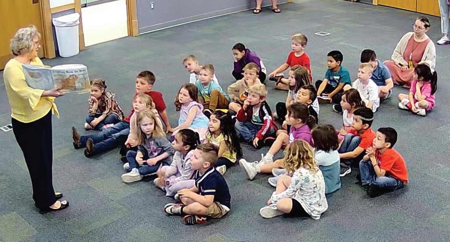 VISIT TO THE LIBRARY — Beaver Dam Preschool recently visited the Akron Public Library. Program Director, Julie Canada, is shown reading to the children. Photo provided by Akron Public Library.