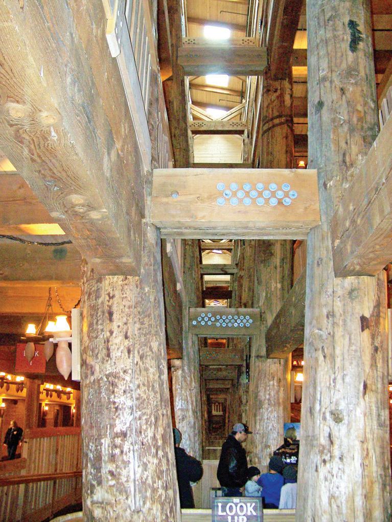 At 510 feet long, 85 feet wide and 51 feet tall, it dominates the property and at first glance from the shuttle bus arriving from the parking lot, it’s truly breathtaking. It looks pretty much as pictured in Sunday school, and as you approach, it blocks out the horizon. Bushes in animal shapes line the path, which is great for photo ops. It is made of 3.3 million board feet of timber from all over the world, making it the
