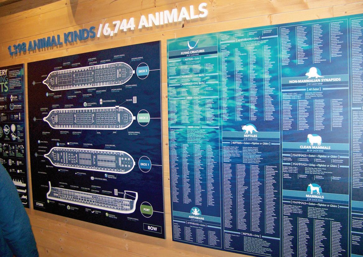 A long ramp takes you up to deck No. 1 where you learn about the coming flood, see animal exhibits and find out what types of creatures Noah brought on board.