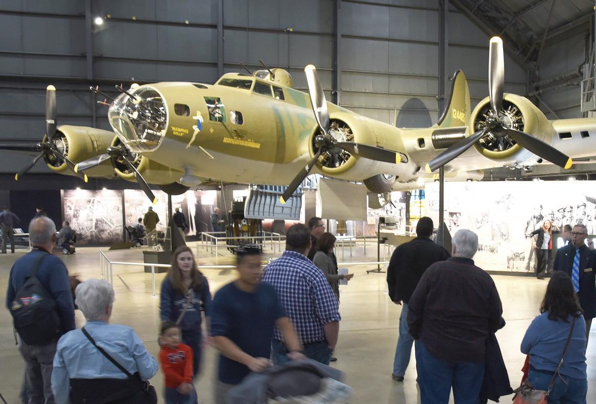 The Boeing B-17F Memphis Belle is a main attraction. It became a symbol of the heavy bomber crews and support personnel who helped defeat Nazi Germany in World War II. It was one of the first heavy bombers to complete 25 combat missions, after which it and its crew returned to the United States to boost the sale of war bonds.