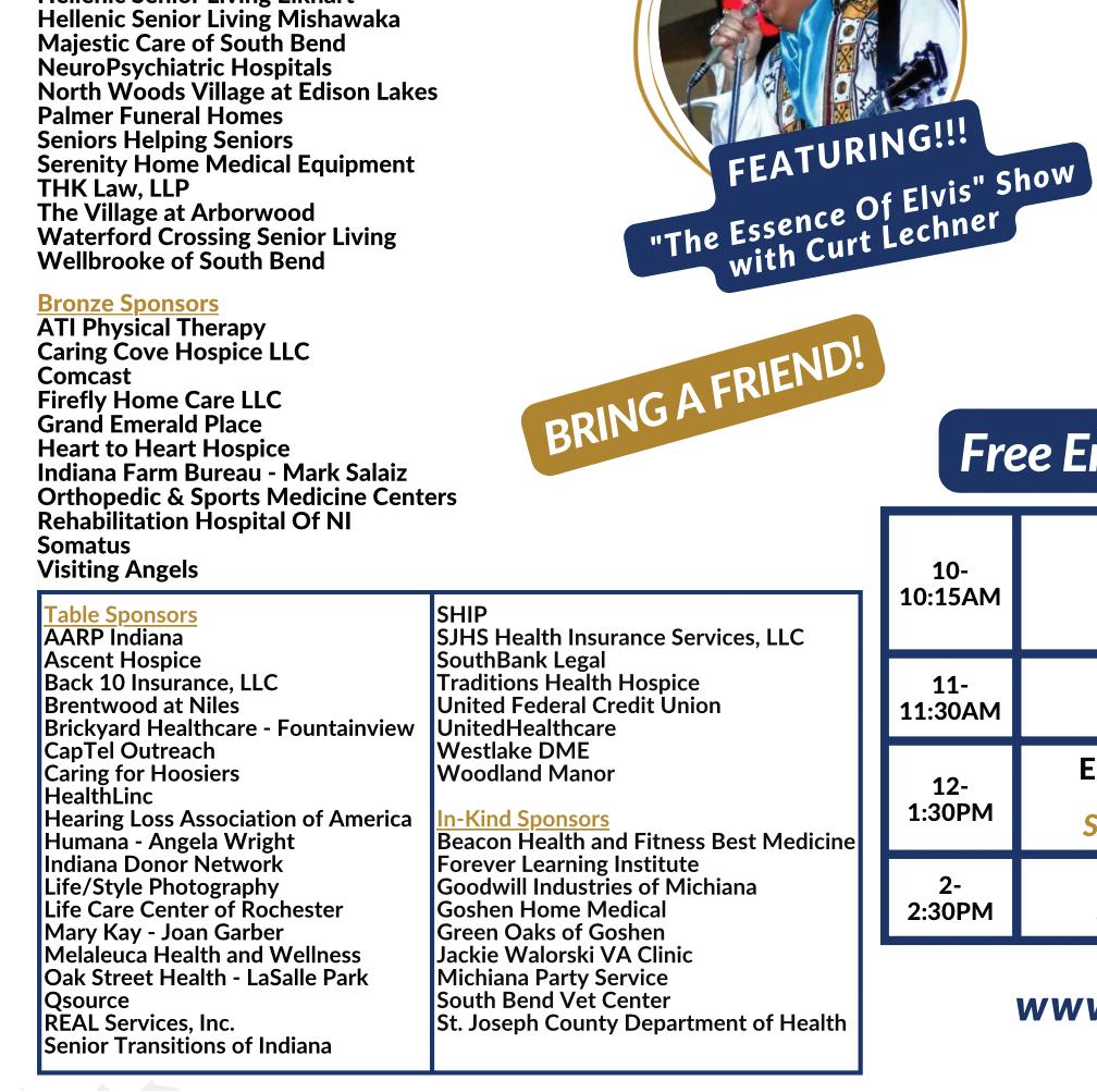 There will be free entertainment for the entire event beginning with the opening ceremonies, which include The Miller’s Vets Color Guard and the national anthem, which will be performed by Shalom Menora, CEO of Sterling Health Care. The fair also features St. Paul’s Bell Ringers, and Forever Learning Center’s Silver Tones. The headliner at noon will be Elvis Tribute Artist Curt Lechner, who will present “The Essence Of Elvis.”