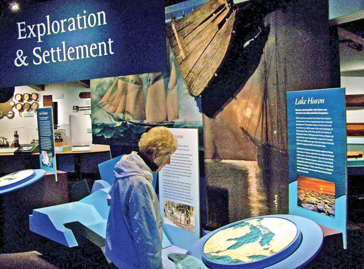 Though storms on the lakes may not be quite as violent as those on the oceans, over the years more than 8,000 ships have been sunk and more than 10,000 lives lost. One of the most curious disasters was the disappearance of the Edmund Fitzgerald in a storm with near hurricane force winds Nov. 10, 1975. As told in the museum’s exhibit, the freighter suddenly and mysteriously went to the bottom of Lake Superior, where it lies 503 feet below the surface. It had been communicating with another vessel, but no SOS was sent. It just vanished. Twenty-nine crewmen died. All that’s left are a couple oars and an inflatable life raft stamped with the ship’s name. Visitors can view a simulation of the wreck on an interactive computer screen.