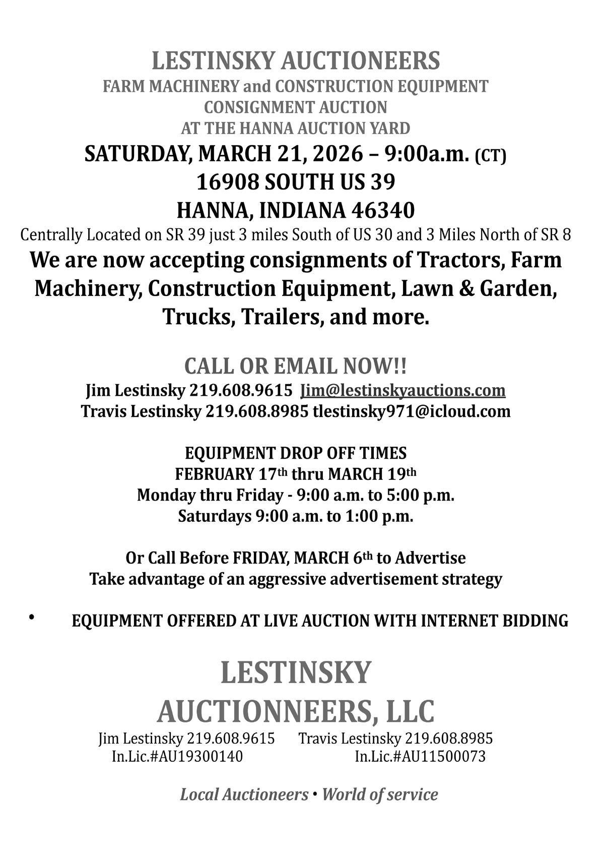 TEDS AUCTION CENTER AC31400065 PHONE... 574-936-SALE (7253)