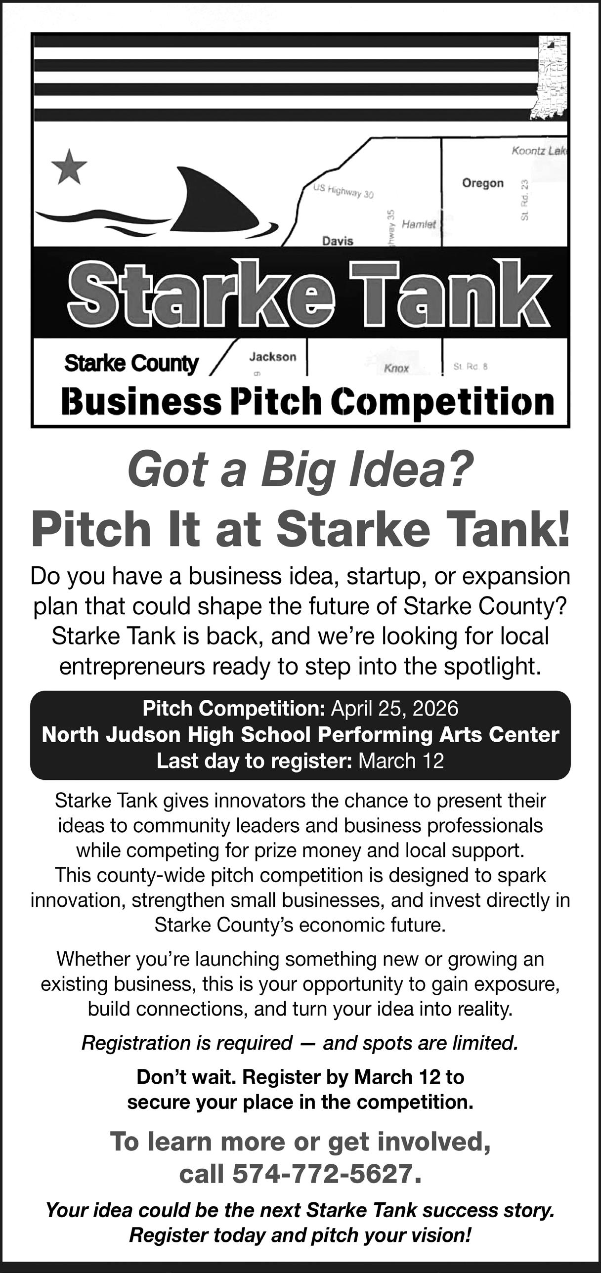 Bids are due by Friday March 13th, at 6:00PM. The bids will be opened at the Railroad Township Board Meeting on Sunday, March 15th, at 4:00PM which will be held at the San Pierre Fire Station, San Pierre, IN.