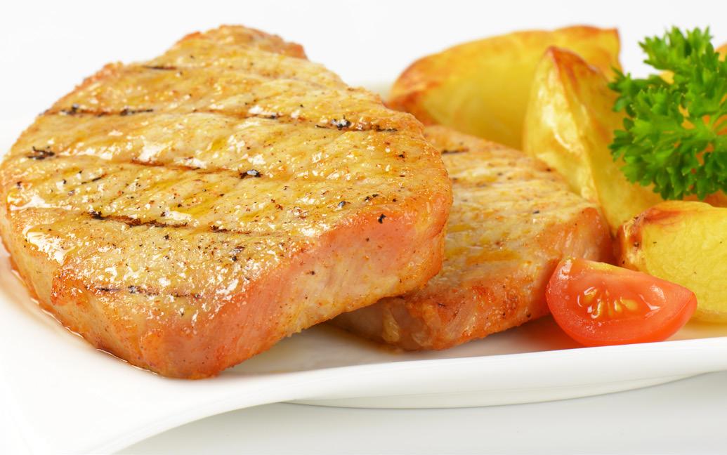 Meal includes: BBQ pork chop(s), baked potato, green beans, applesauce &