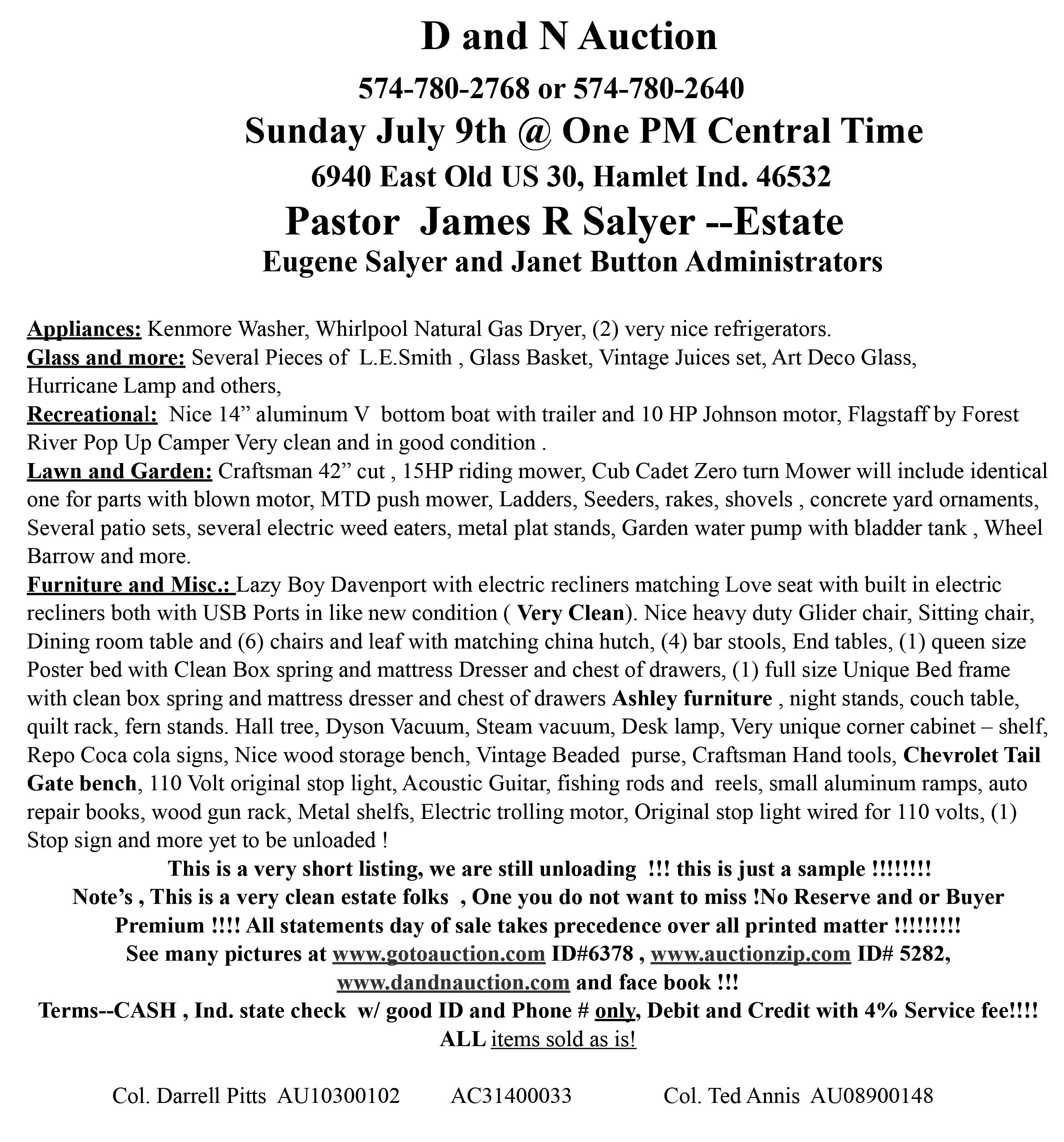 July 10th to 21st Bring A Friend! O’Donnell Funeral Home, Inc. 302 Lane Street~North Judson, IN 574-896-2149 Our Family Caring For Our Community With Dignity And Respect since 1975 Monument & Preneed Services Available