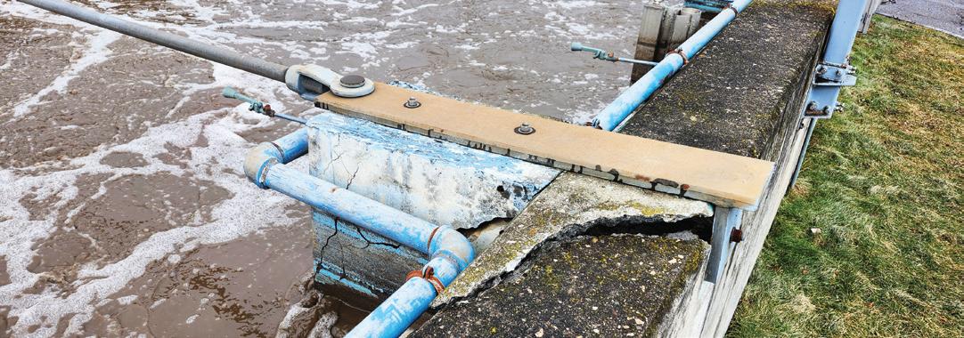 A ’70s-era aeration tank was retrofitted in Burlington’s last upgrade. Pictured is an example of some of the tank’s structural issues. It will be replaced as part of Stage 1 with a completely new aeration tank in a different location, with this location being used for tertiary filtration. (Photo provided by Burlington, Vt.)