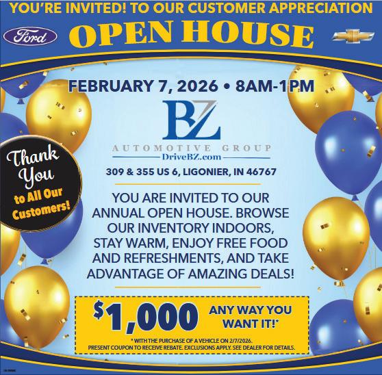 located at 14339 CR 8, Middlebury. Public inspections 3-5 p.m. Tuesdays or by appointment. For bidding and bidding updates, call (260) 499-0216 or (260) 4990093.