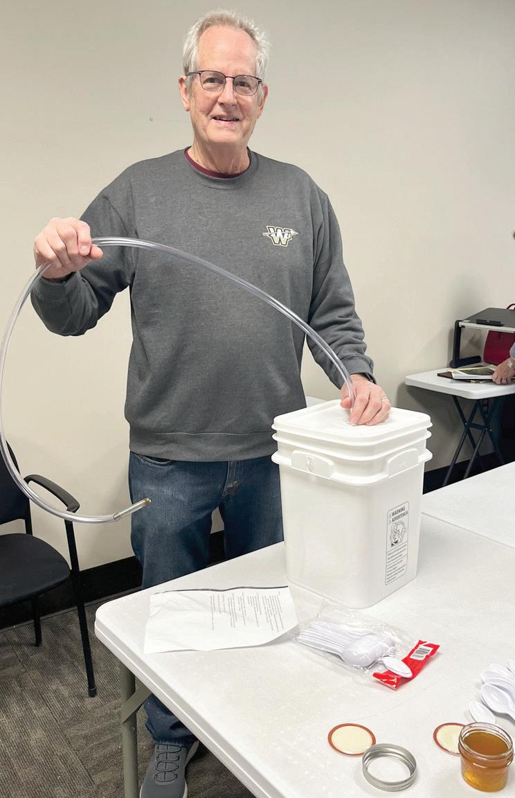 TAPPING TREES AND MAKING MAPLE SYRUP — Dan Bauer gave an informative presentation about his hobby of making maple syrup. Photo provided by Pam Schumm.
