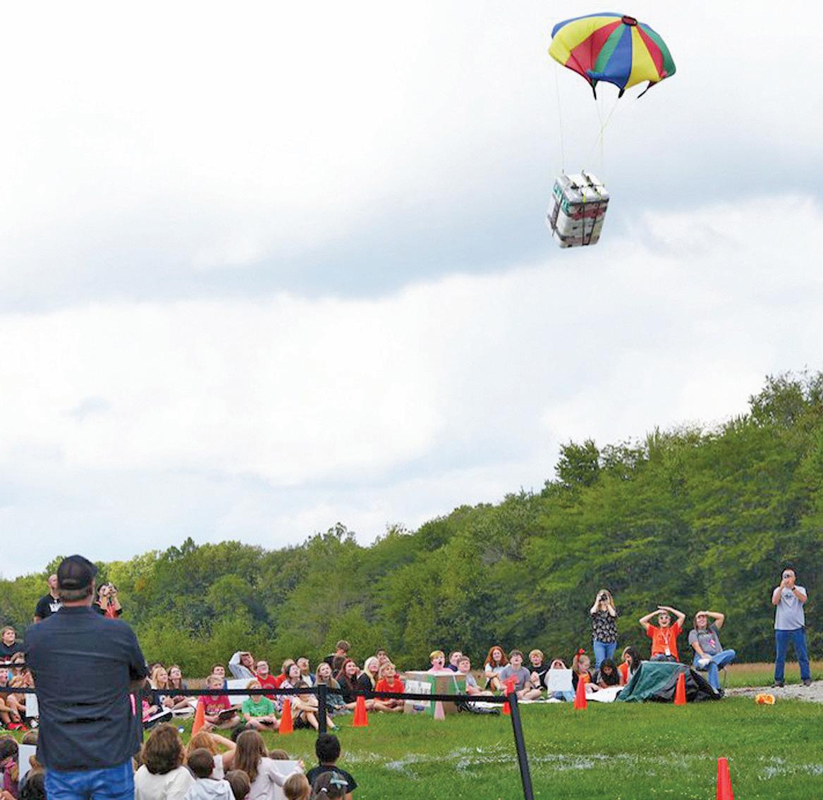On Drop Day, Kosciusko REMC brought a bucket truck to raise the stakes by dropping pumpkins from 40 feet above the drop zone.