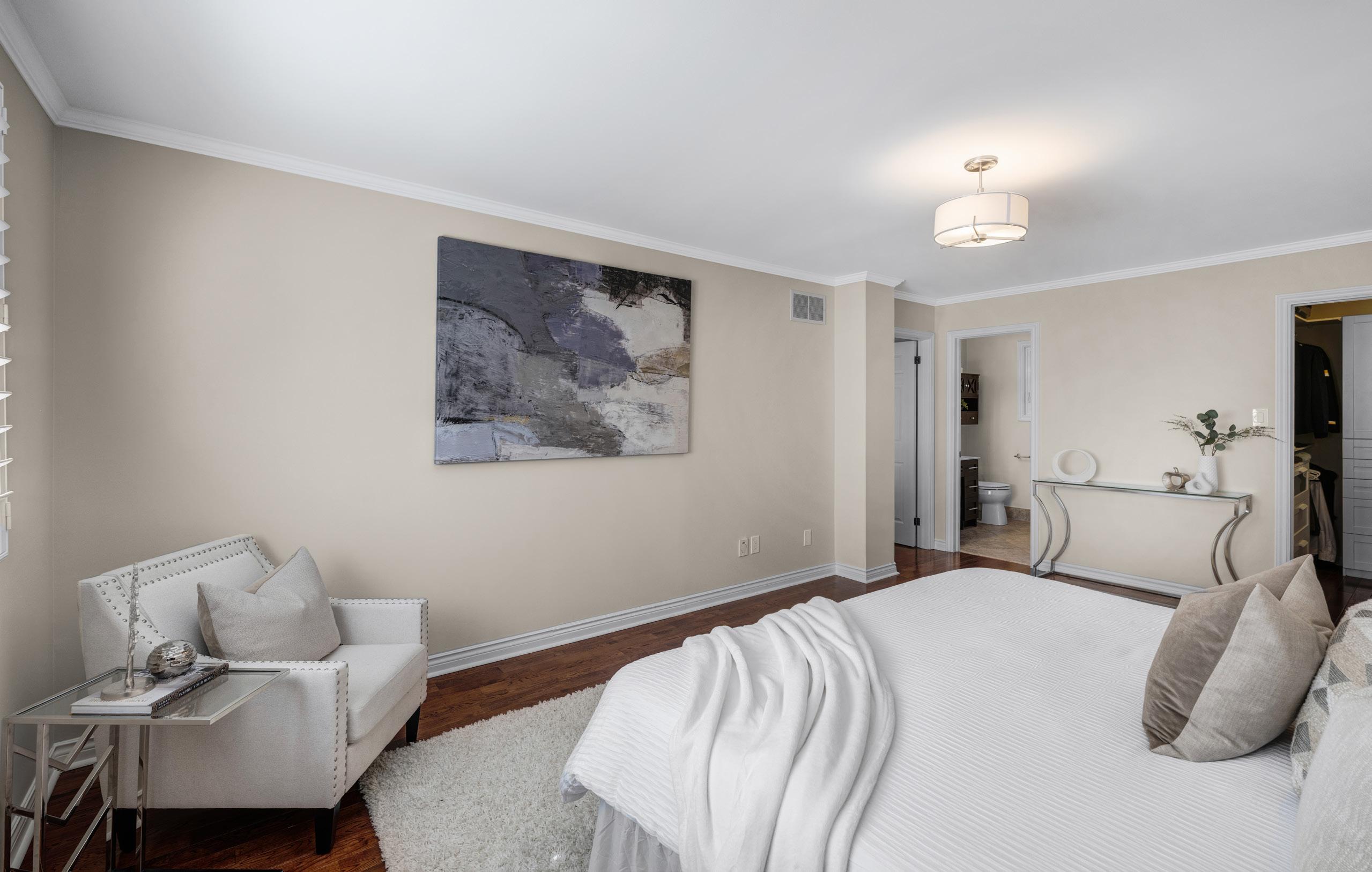 Ascending to the upper level reveals a serene primary retreat, thoughtfully designed with a custom walk-in closet and a private three-piece ensuite, offering a tranquil escape at day’s end. Three additional generously proportioned bedrooms, each filled with natural light and ample storage, create an ideal environment for growing families, complemented by a well-appointed four-piece bathroom.