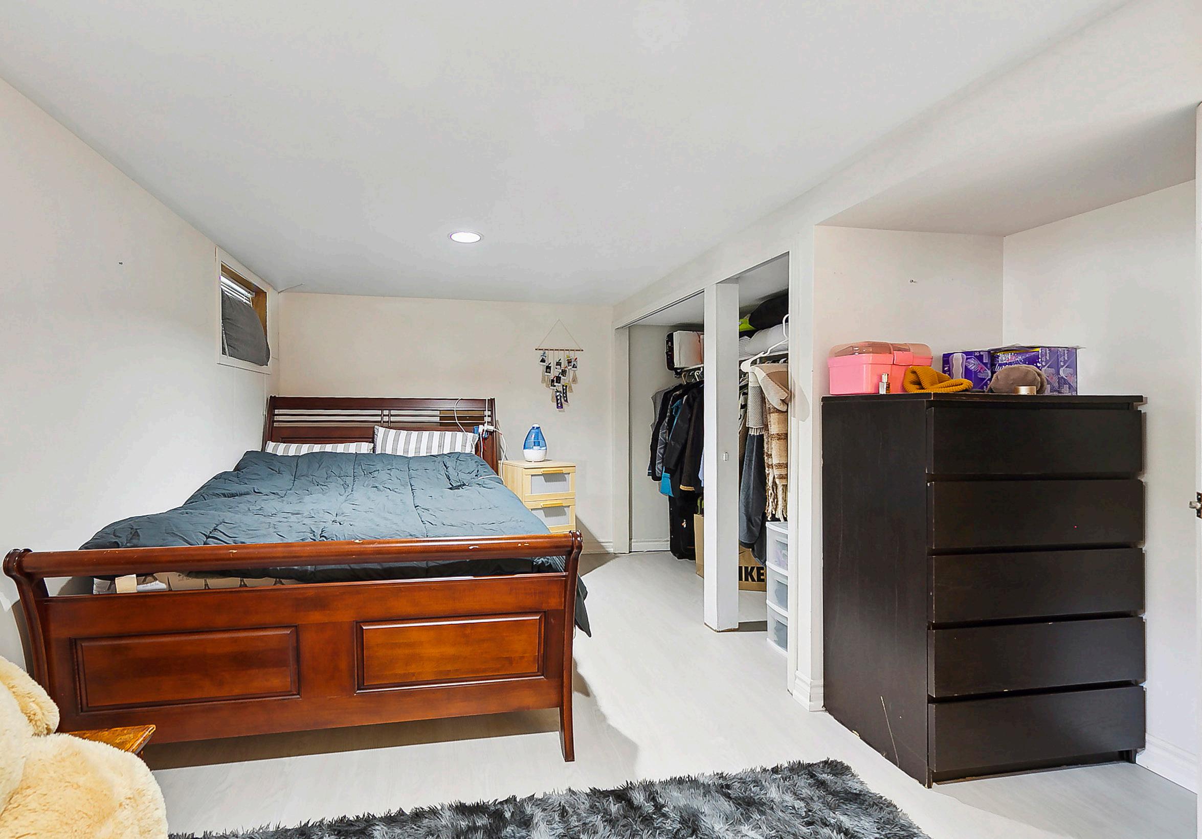 This basement apartment offers comfortable living with a kitchenette, laundry, and spacious living room with pot and track lighting, perfect for entertaining guests. The third bedroom provides plenty of natural light with two above-grade windows and easy access to the storage room. The 4-piece bathroom features a tub/shower combo with tile surround and a single sink vanity with lower cabinetry.