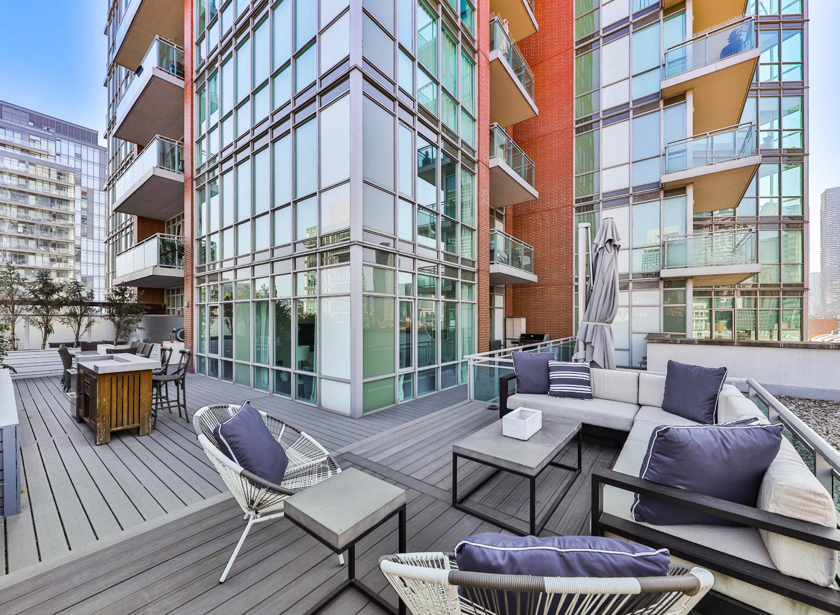 Step outside to one of the largest private terraces in the city, complete with an outdoor bar, built-in speakers, custom lighting, a wall-mounted TV, and a waterline hook-up—perfect for entertaining or unwinding.