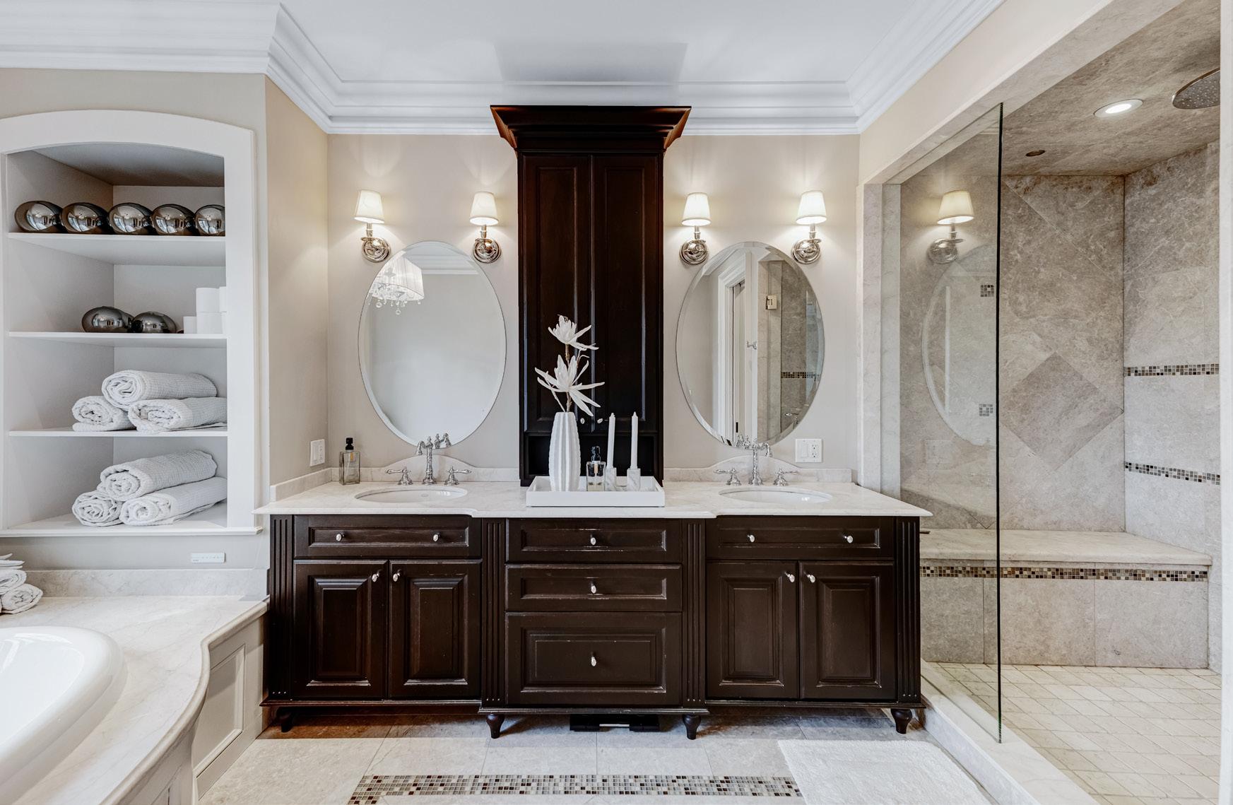 Indulge in the ultimate relaxation experience within the opulent 5-piece ensuite, where every detail is designed with your comfort in mind. Dual sink vanity with quartz countertops and lower cabinetry provides ample storage and style, while the walk-in glass steam shower offers a spa-like retreat, complete with a waterfall shower head, detachable shower head, and four steamers. Delight in moments of tranquility as you soak in the jacuzzi tub, surrounded by a quartz tub deck, or retreat to the water closet for added privacy. Illuminated by built-in ceiling speakers and wall-mounted light fixtures, this oasis is bathed in a soft, soothing glow, inviting you to unwind and rejuvenate.