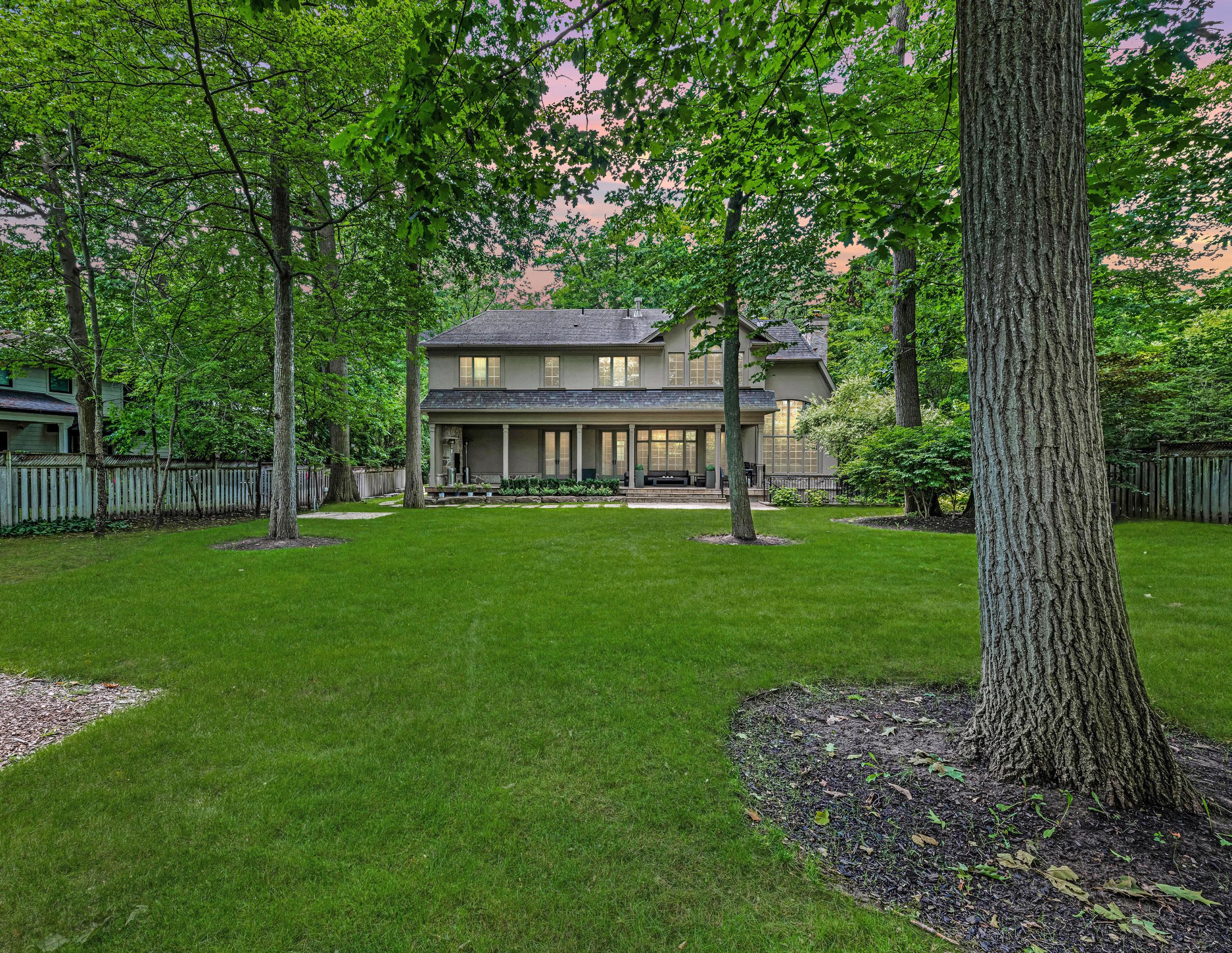 As you wander through the meticulously landscaped grounds, mature trees stand sentinel, casting dappled shadows upon the lush greenery below. Each corner of the expansive yard invites exploration, offering a wealth of opportunities for relaxation and recreation. A covered patio, adorned with a grand outdoor gas fireplace and stone surround, beckons you to unwind in style, providing a cozy retreat for intimate gatherings or tranquil moments of solitude.