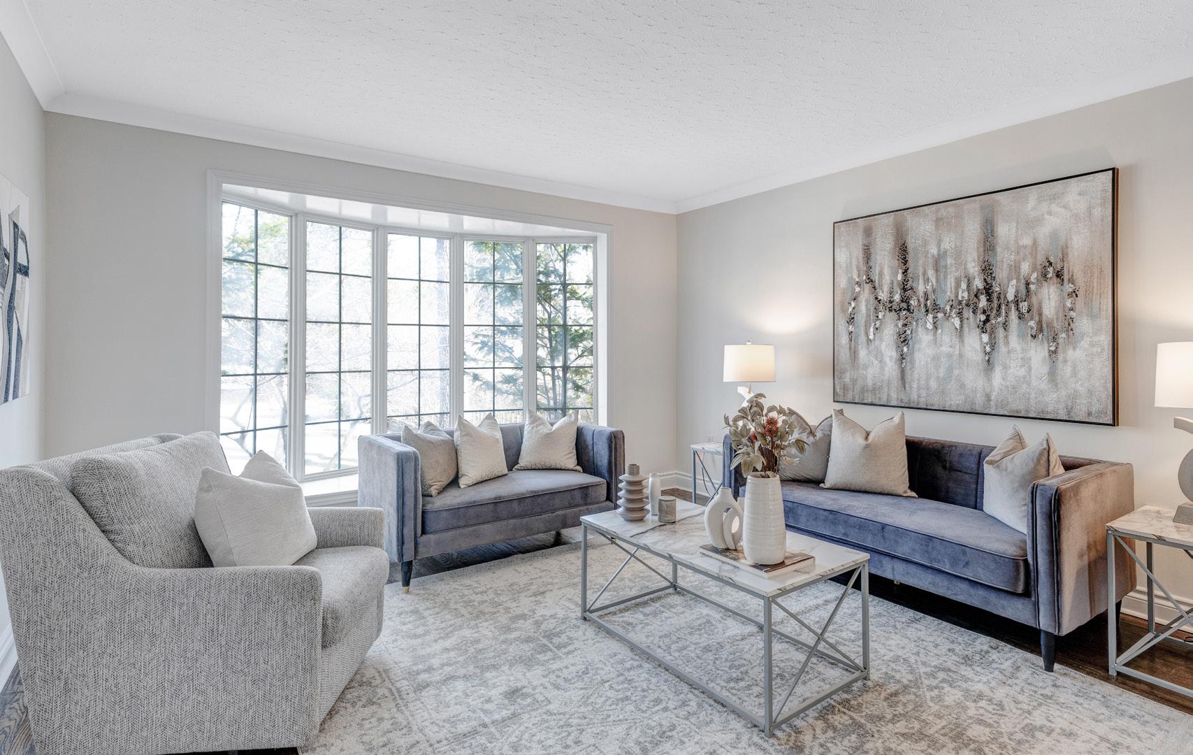 Inside, the home is flooded with natural light thanks to its skylights, expansive windows, and open-concept spaces that blend functionality and comfort. Highquality finishes, including hardwood floors, crown moulding, custom millwork enhance the warmth and sophistication throughout.