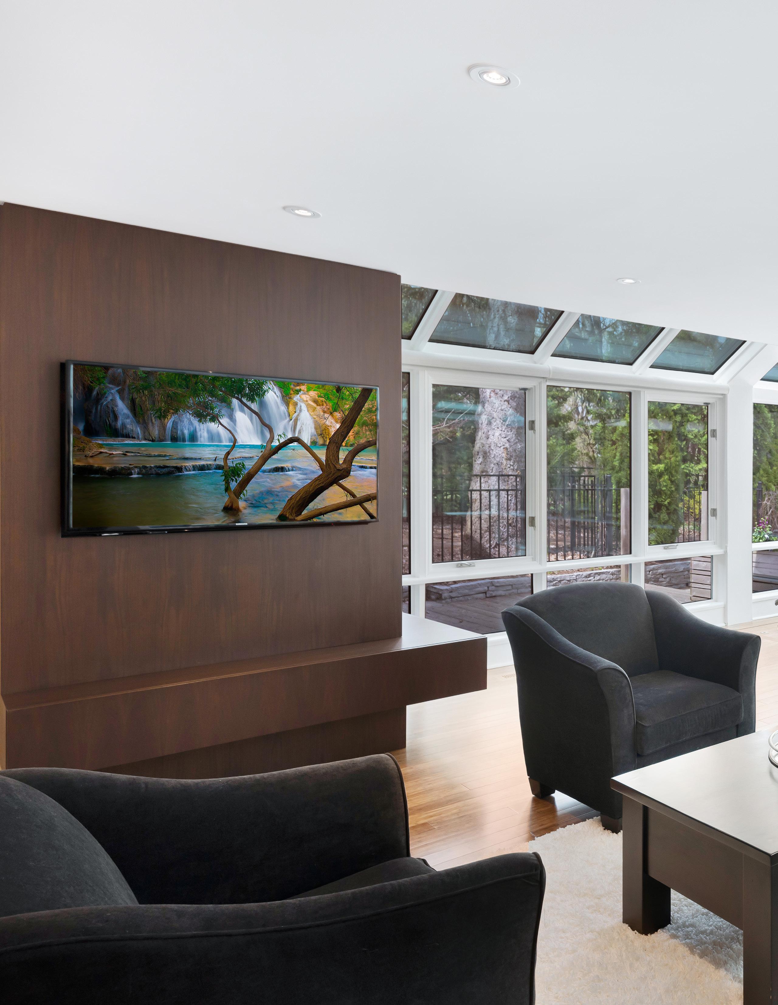 The lavish comfort of your guests will be heightened by opulent design such as the engineered bamboo flooring, Valor gas fireplace with 3D marble mosaic surround, and pocket doors with textured glass inserts.