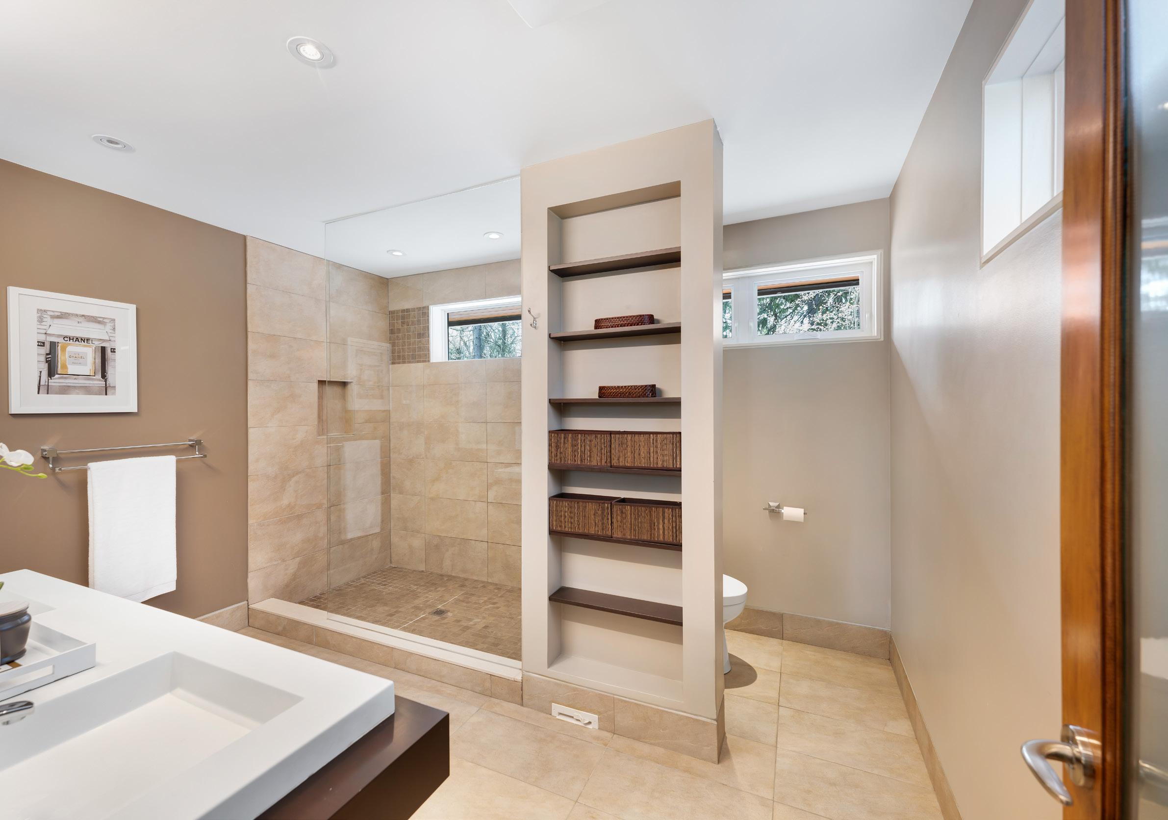 In addition, there are two wood decks, including one with a pergola and BBQ area. This backyard offers plenty of room to relax and enjoy the lush surroundings on the deep 438-foot lot.