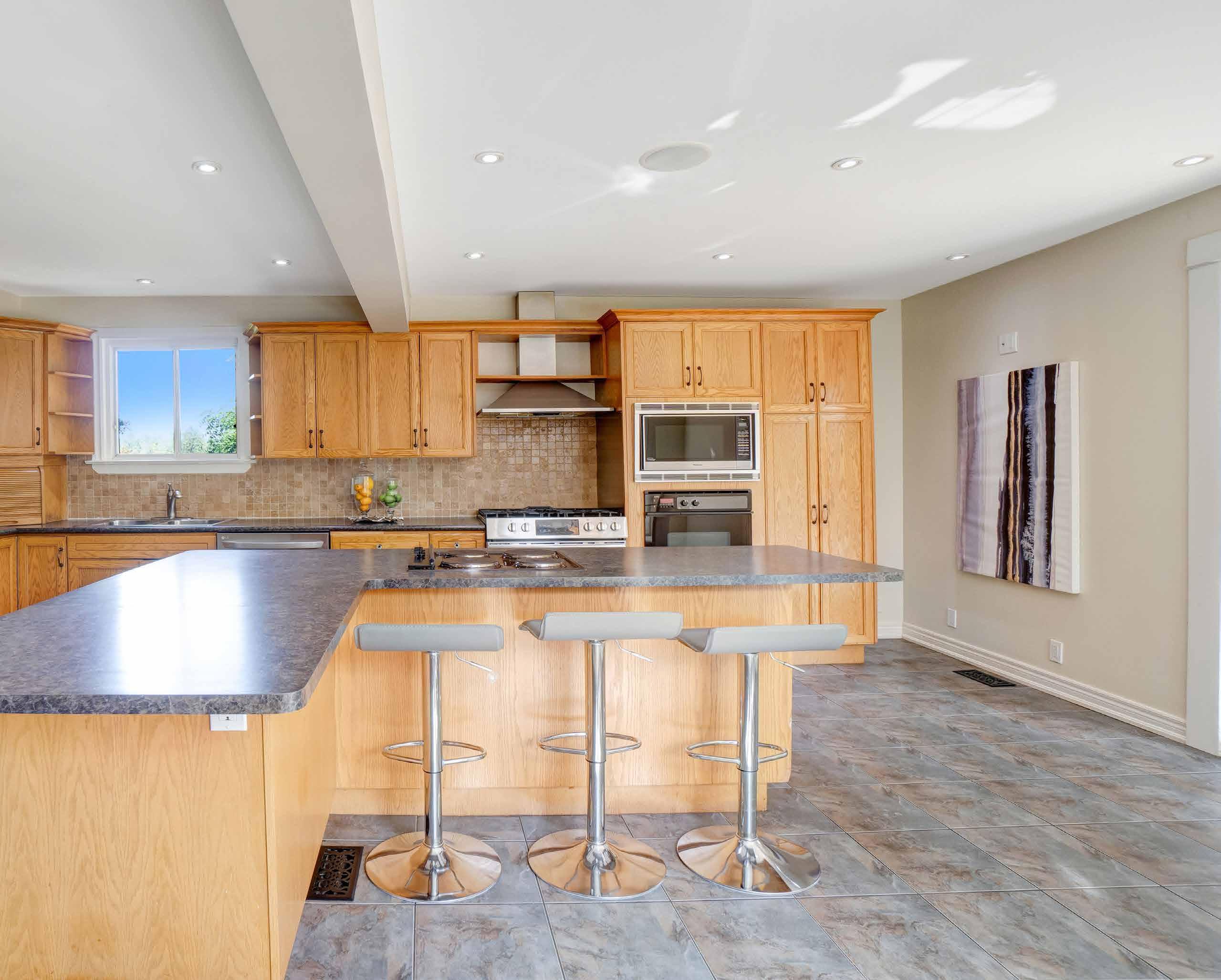 This space is complemented by a lovely breakfast area that overlooks the backyard and includes a convenient walkout to the deck. With all these features at your disposal, you are ensured to have the ultimate gathering place for cooking and hosting in style.