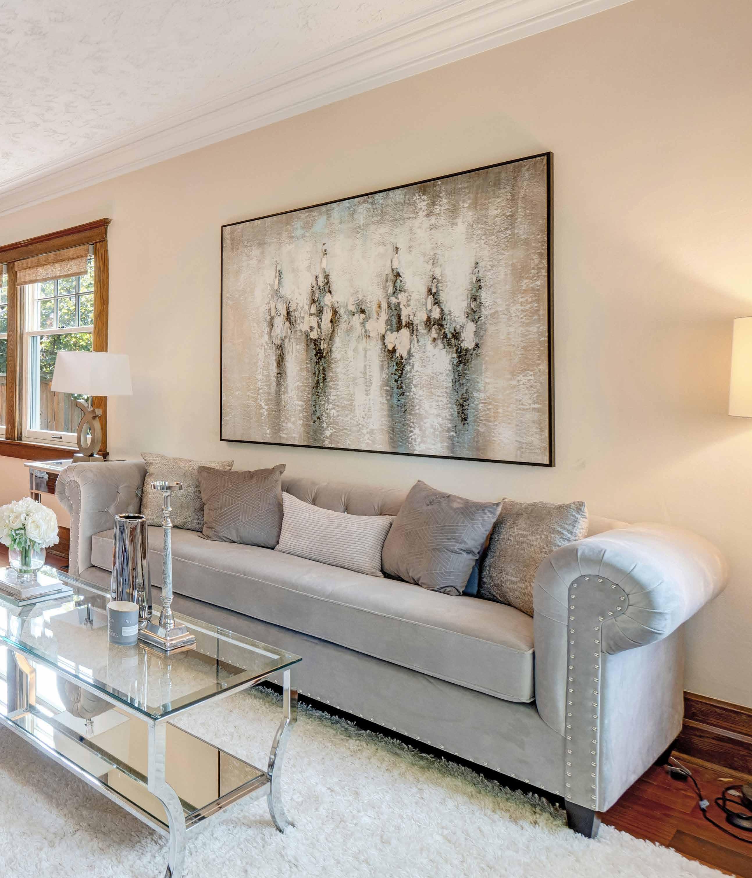 Details and size matter when you are taking care of your family’s daily meals. The resplendent and vast contemporary kitchen boasts luxury appliances, custom cabinetry, a pantry, and a large centre island.