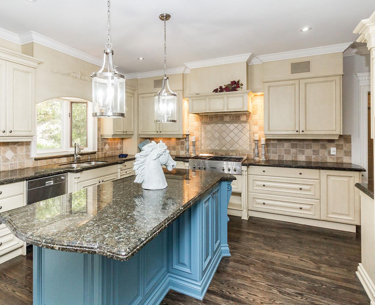 Designed to inspire, the eat-in kitchen is a stunning blend of modern convenience and timeless sophistication. Custom-built upper and lower cabinetry, undercabinet lighting, granite countertops, and a full tile backsplash create a warm and elegant space. The oversized centre island, complete with barstool seating and pendant lighting, is perfect for casual meals or prep work. Premium stainless steel appliances include a Heartland Metro six-burner gas stove with hood range, double wall oven, Miele dishwasher, and KitchenAid fridge and freezer with a water and ice dispenser. A breakfast area seamlessly connects to the family room and kitchen, offering French doors and a sliding walkout to the backyard patio. The adjoining butler’s pantry is equipped with a stainless steel sink, beverage fridge, tile backsplash, and cabinetry—making it the ideal transition space between the kitchen and formal dining room.