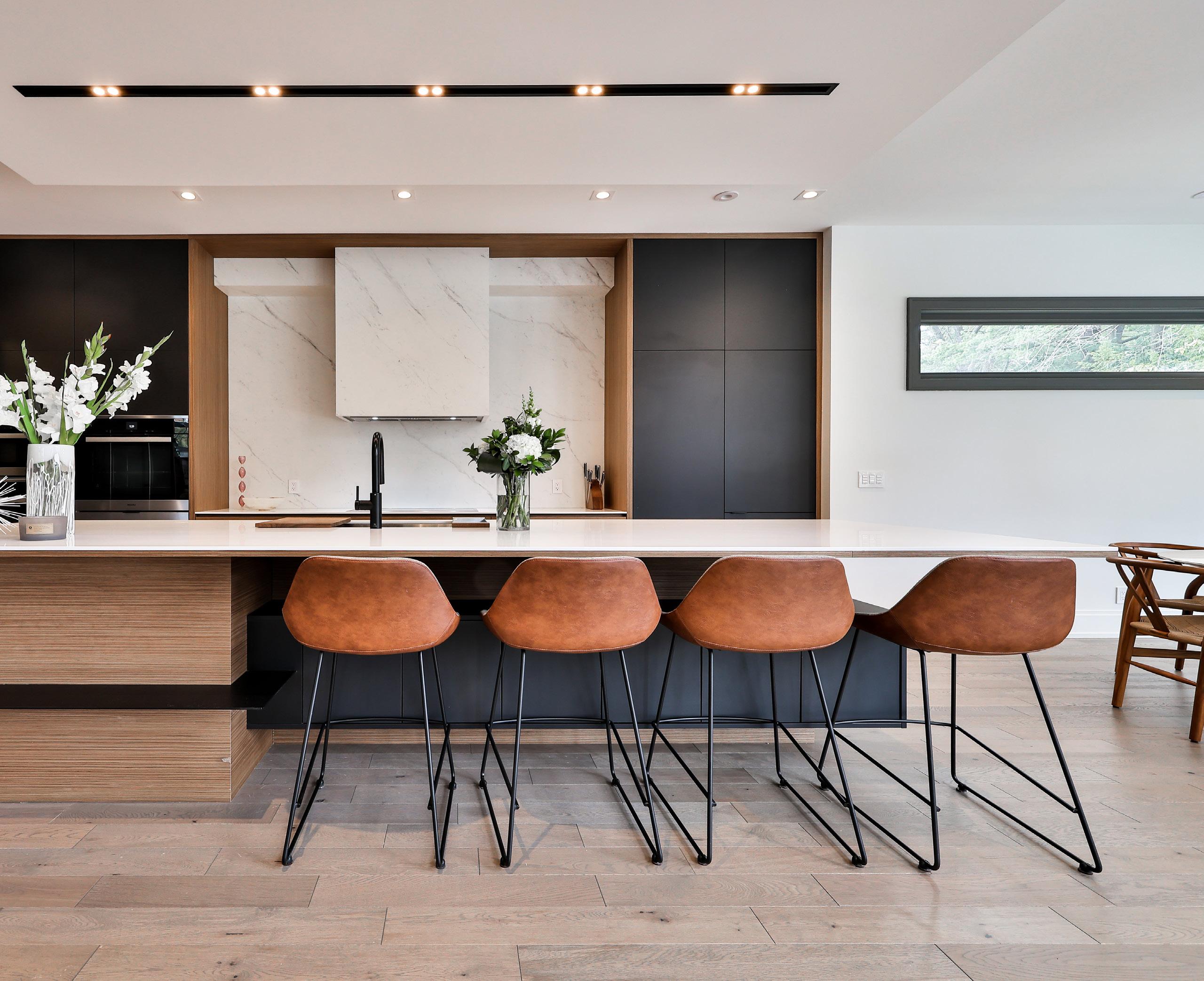 Equipped with premium appliances from renowned brands such as Gaggenau and Miele, this kitchen is a haven for cooking enthusiasts. From the sleek smooth cooktop to the built-in stainless steel microwave and steam oven, every appliance is a testament to luxury and innovation. The Miele panelled push-to-open integrated built-in refrigerator and freezer ensure that your ingredients are stored in style, while the Marvel beverage refrigerator keeps your drinks chilled to perfection.