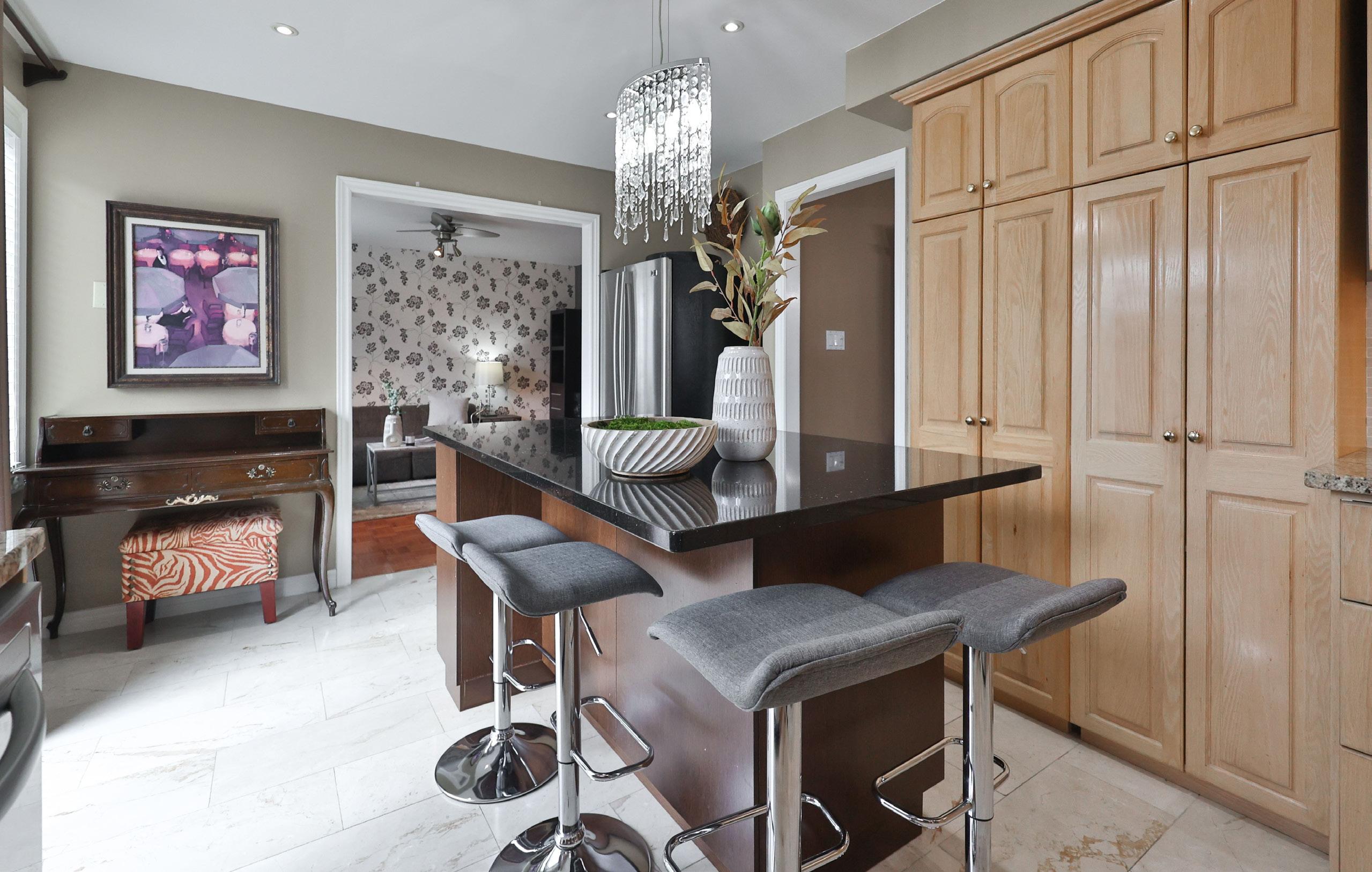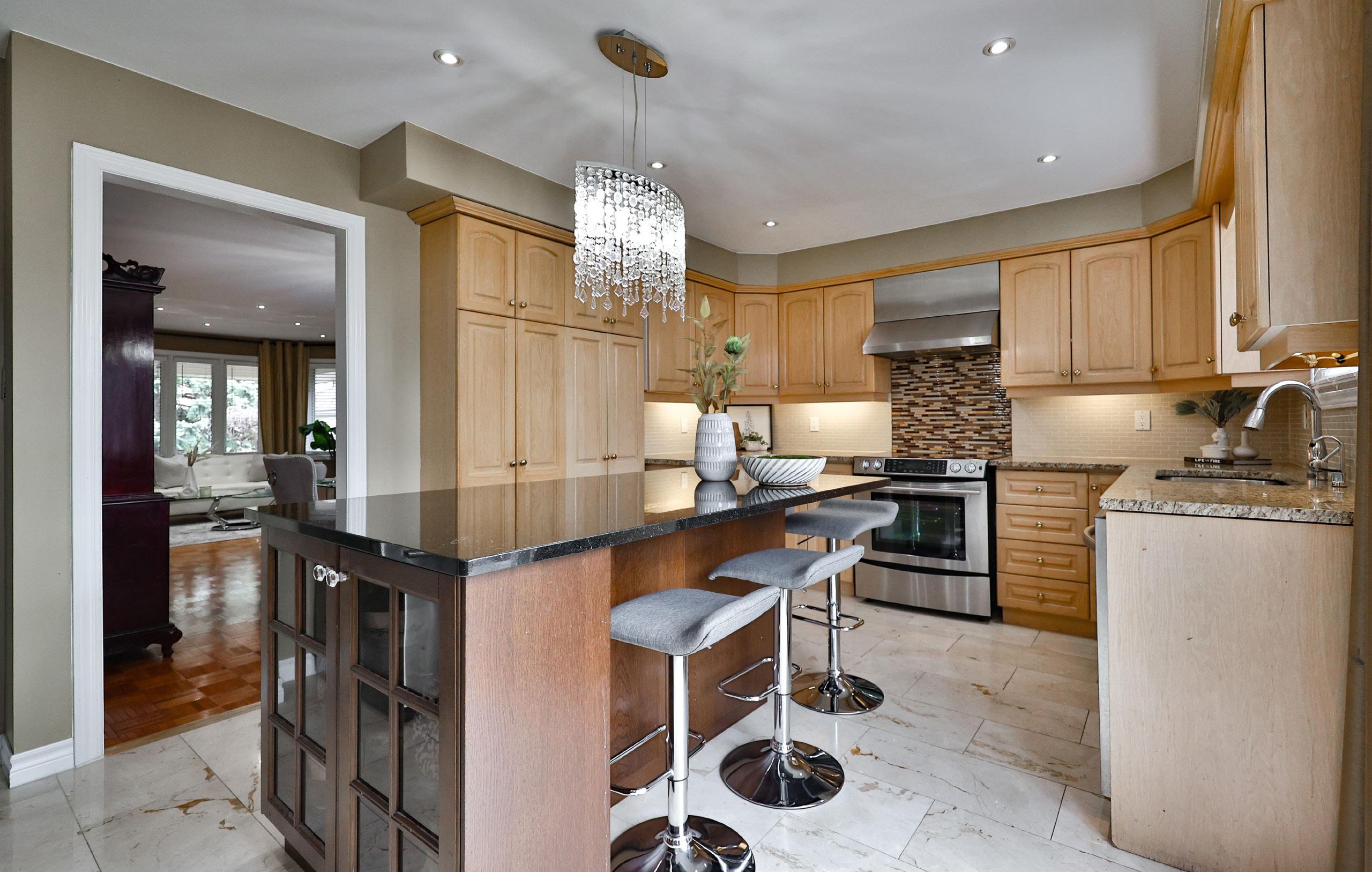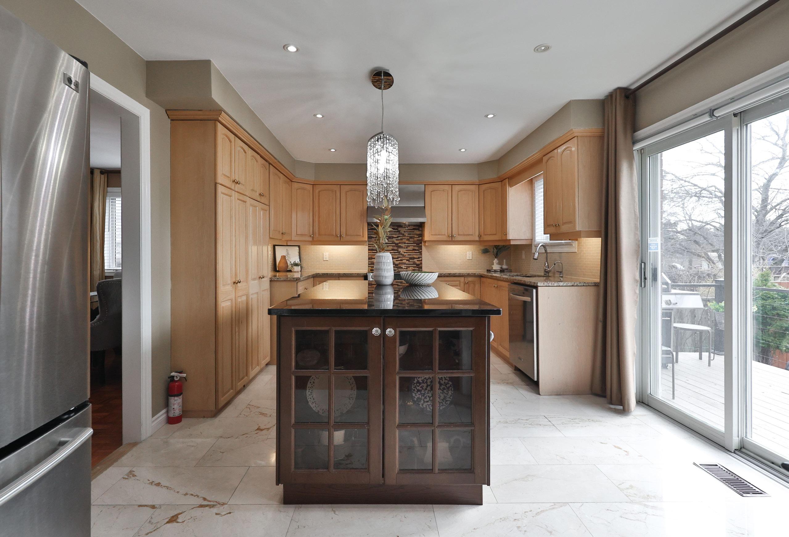 Upon entry, a bright and elegant main level unfolds, where expansive windows bathe the formal living and dining areas in natural light, creating an inviting ambiance ideal for both intimate gatherings and grand entertaining. Flowing seamlessly beyond, the thoughtfully updated kitchen serves as the heart of the home, appointed with thick granite countertops, a centre island, marble flooring, and sleek stainless steel appliances, all enhanced by warm pot lighting.