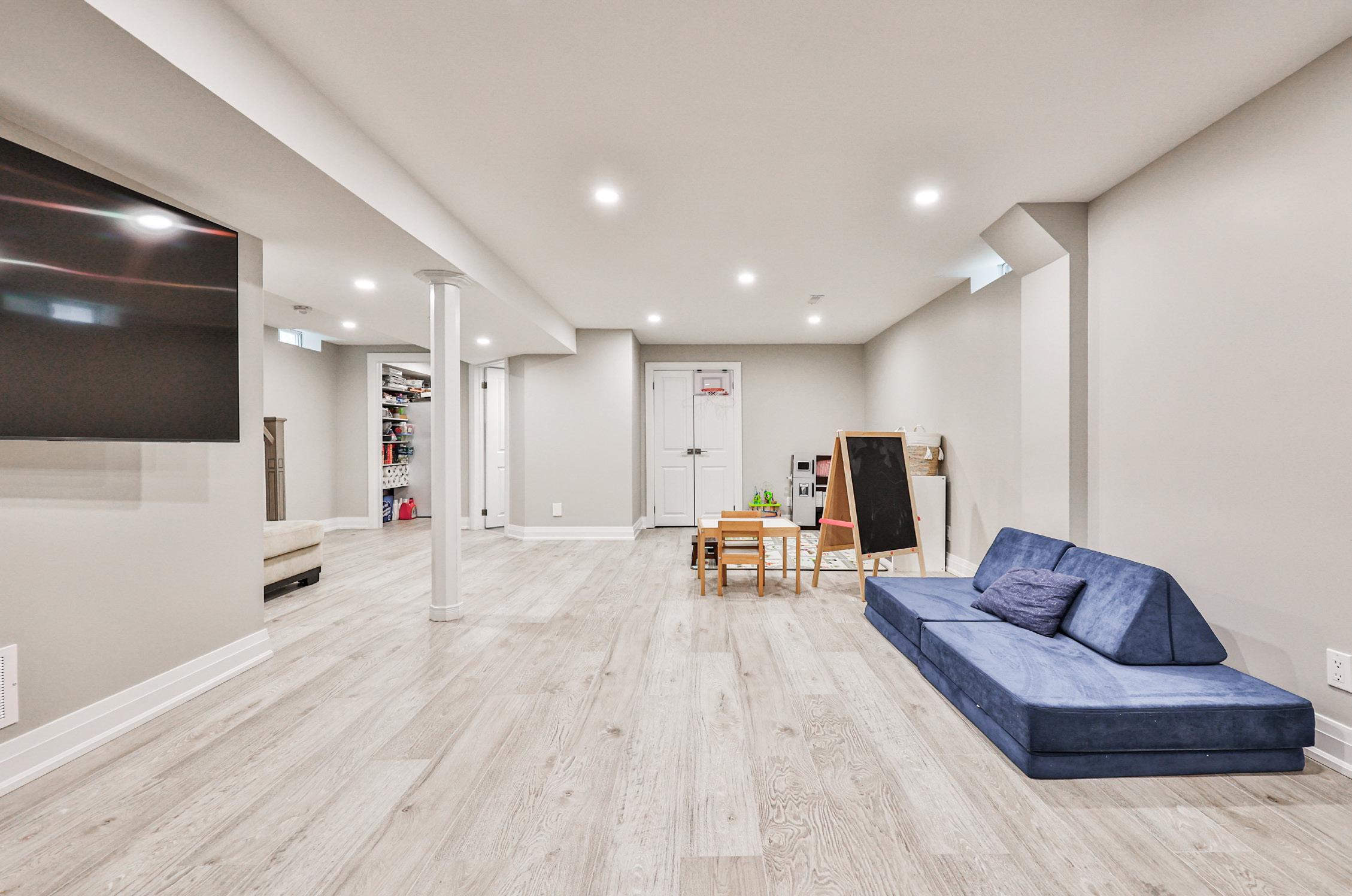 Adjacent, you’ll discover a versatile recreation area, ready to host game nights, movie marathons, or any other activities that bring joy to your life. A separate office provides a quiet space for focused work or study, ensuring productivity in a tranquil setting. A newly added 3-piece washroom adds convenience, and there’s ample storage space for keeping everything organized and clutter-free.