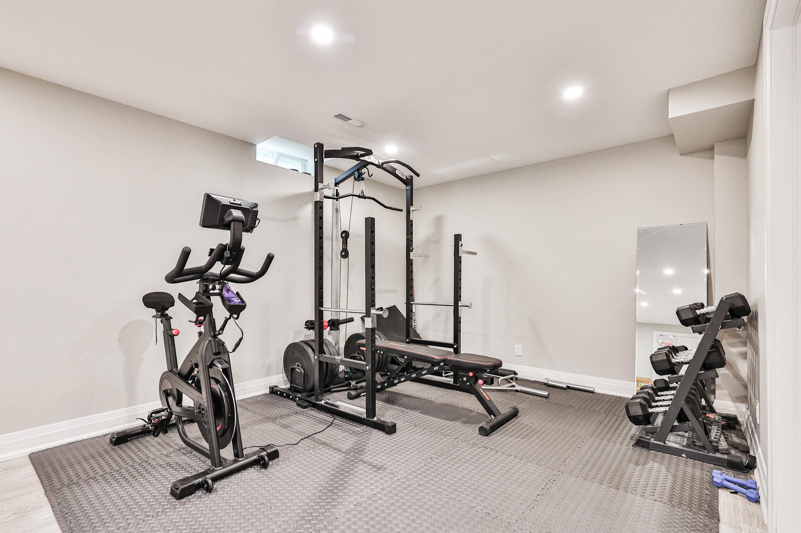 Recently renovated in 2021, this space is an entertainer’s dream, thoughtfully designed to cater to all your family’s needs. Whether you’re seeking a place to work out, unwind, or simply gather with friends and family, this lower level offers it all. A designated gym area provides ample space for your fitness routine, complete with padded mats and durable vinyl flooring underneath.