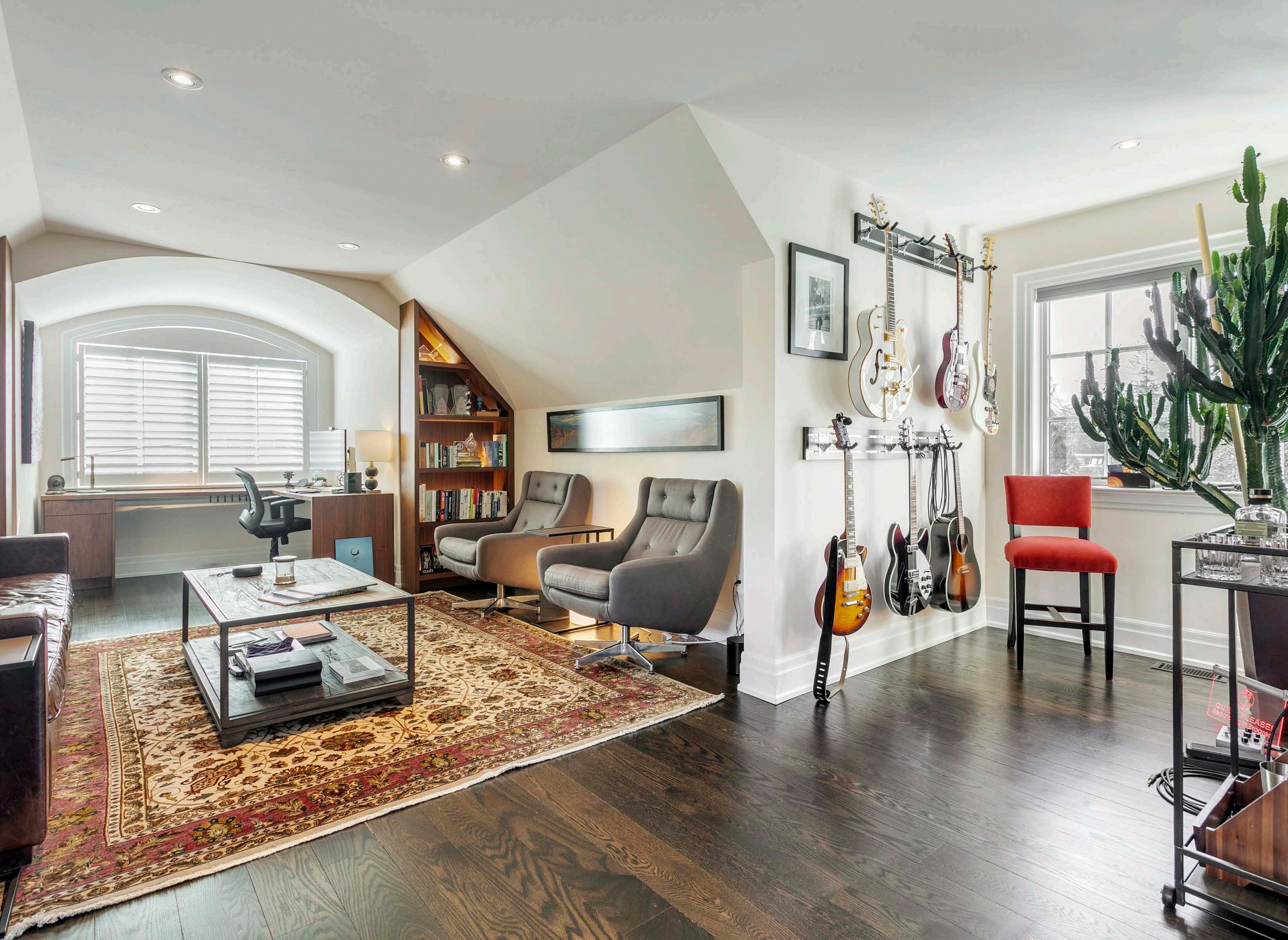 Begin in a gorgeous 19 ft. foyer with oak hardwood floors with Herringbone design open to the second level. These soaring heights extend to the office and the living room featuring an art wall, a fireplace with Italian stone, and 2-storey windows to enjoy an epic view of the backyard and Credit River.