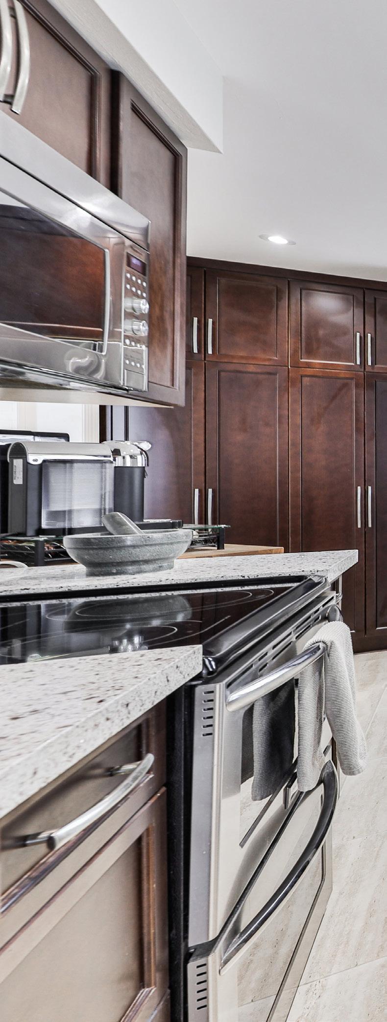 Greeted by the gentle caress of natural light filtering through two expansive windows, and enhanced by the soft glow of pot lights overhead, this culinary sanctuary invites you to explore the art of gastronomy in an environment of unparalleled luxury.