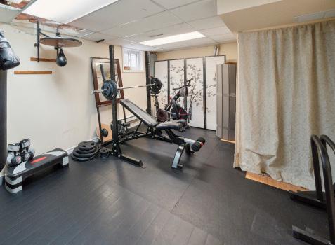 The lower level offers a fantastic work out space complemented by rubber floors, above grade windows, and bright lighting. There is also a conveniently located laundry room in the adjacent room