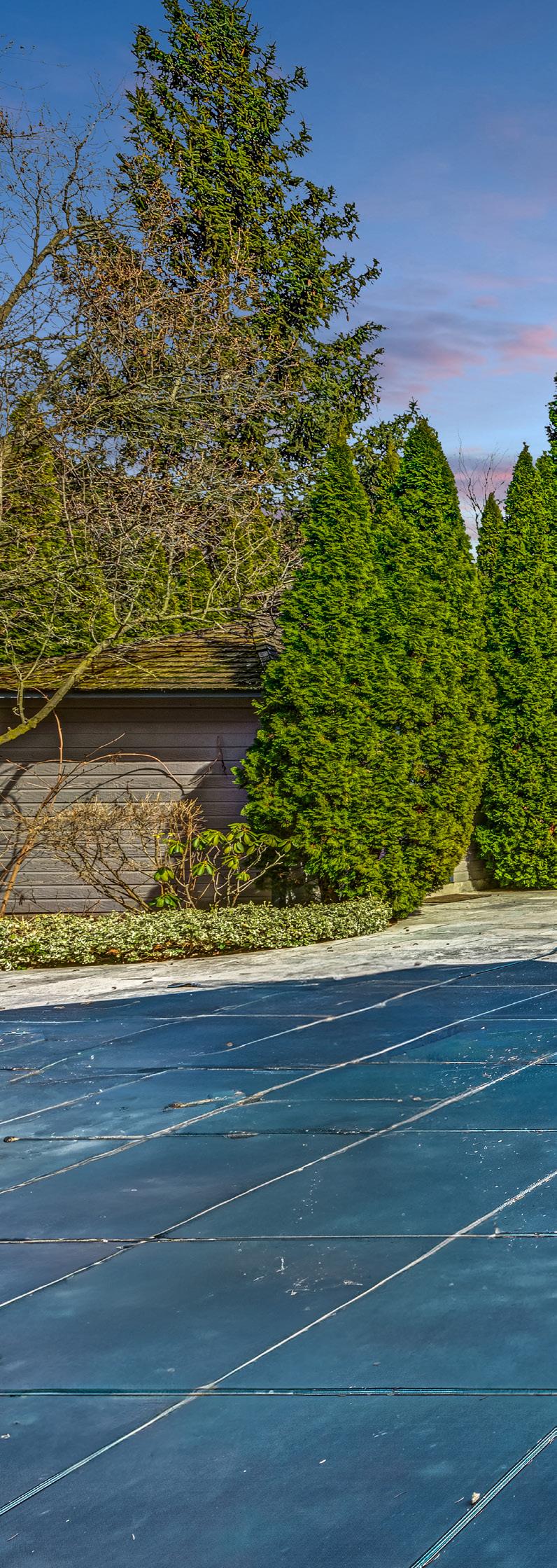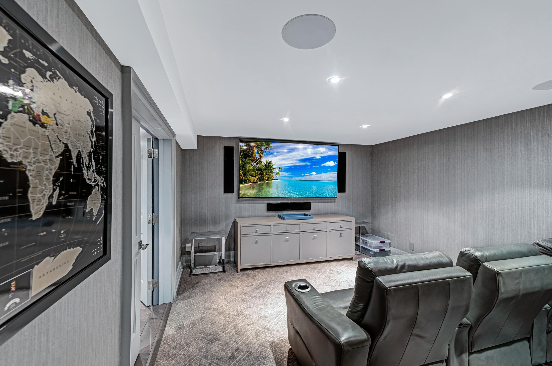 The lower level is a testament to luxurious living and entertainment, offering an array of exceptional amenities designed for relaxation and recreation. Here, you’ll find a state-of-theart home theatre room equipped with built-in surround sound speakers and a wall-mounted TV, a well-appointed exercise room featuring mirrored walls and high-quality gym flooring and a dedicated wine room. Completing the lower level is a wet bar, a spacious recreation room with a pool table, and a powder room for added convenience.