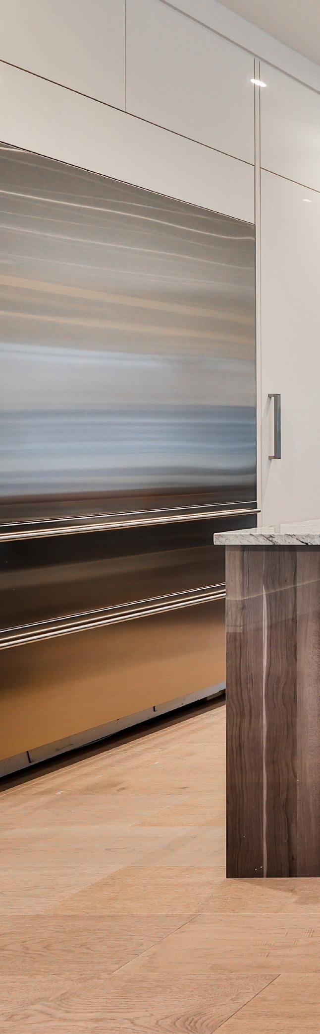 The kitchen is equipped with custom-built, soft-close upper cabinetry with under-cabinet lighting, and matching soft-close lower cabinetry and drawers, providing ample storage and a seamless aesthetic. High-end appliances elevate this space to a chef’s dream, featuring a Wolf stainless-steel 6-burner gas range, Wolf stainless-steel range hood, Wolf stainless-steel built-in microwave, an ASKO stainless-steel dishwasher, and a SubZero stainless-steel refrigerator with two lower freezer drawers. These top-tier appliances ensure that every culinary endeavour is executed with precision and ease.