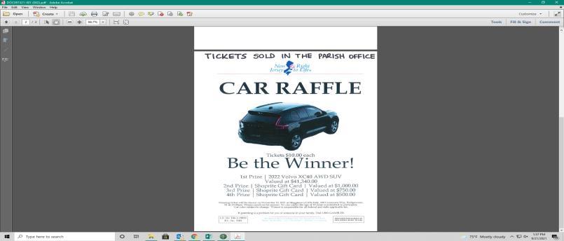 largest pro-life organization, dedicated to protecting all human life from conception to natural death. Tickets are available UNTIL November 5th for $10 each in the Parish Office.