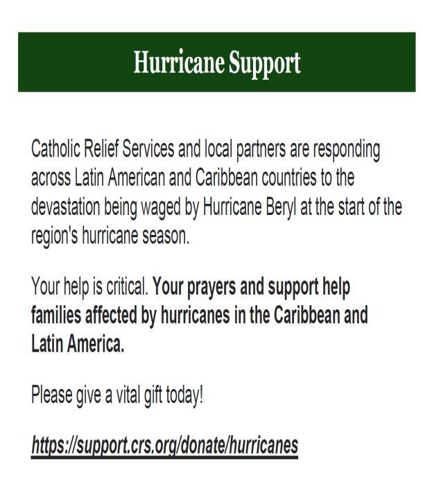We will have a collection box for this appeal at the masses on July 27 & 28. Please be generous.