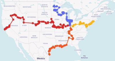 In keeping with this vision, the National Eucharistic Pilgrimage will accompany Jesus from city to city, lighting hearts on fire along the way. Use this interactive map to explore each of the four unique routes of the National Eucharistic Pilgrimage. Then register to attend the events happening near you!