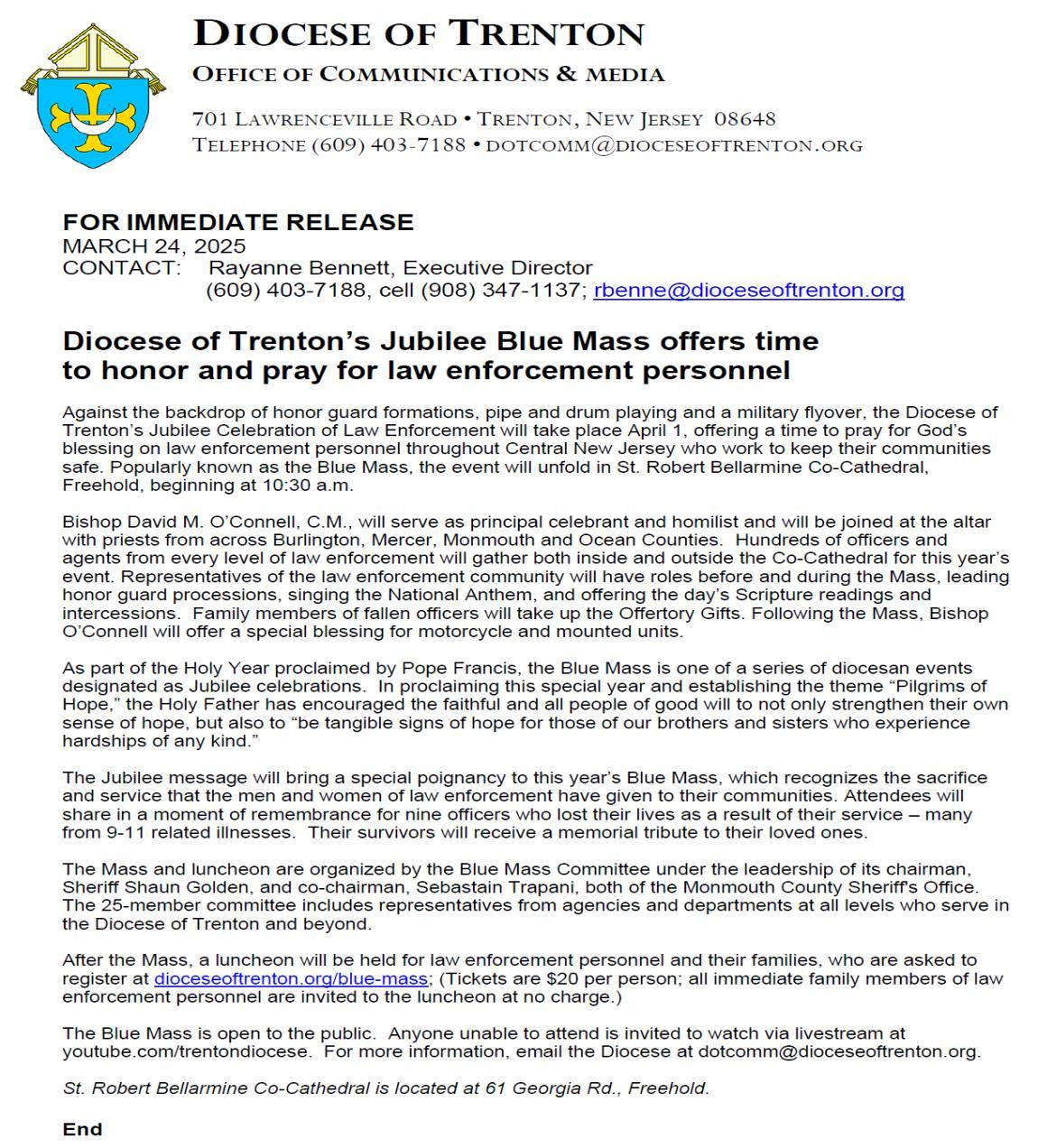 His Excellency, The Most Reverend David M. O’Connell, CM, Bishop of Trenton will visit our parish community fir the Solemnity of Easter. The bishop will be the principal celebrant and homilist at the 12 noon mass on Easter Sunday, 20 April 2025. Come and greet Bishop O’Connell. Have a great week. Let us remember one another in prayer. Happy Sunday. Peace. Father Jeff