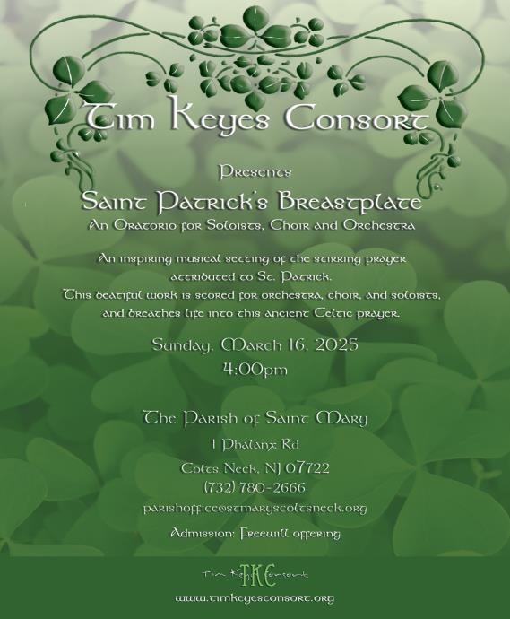 The Parish Office is closed Fridays and Saturdays. The Parish Office will also be open Sunday April 6, 9am - 1pm Any questions, please call the office at (732)-780-2666.