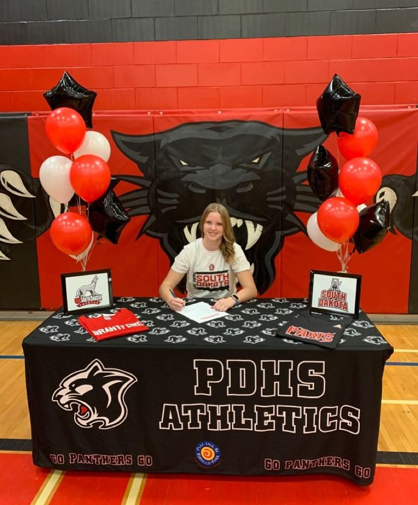 Kenzie Campbell signing her notice of intent for the University of South Dakota The PDHS graduate is having a good academic and athletic year so far.