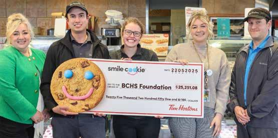 The BCHS Foundation is excited to share that the 2025 Smile Cookie Campaign at the Paris Tim Hortons restaurants raised an incredible $25,251.08 for the Willett. Thank you to the Tim Hortons Paris restaurant owners, staff and patrons at all three locations – 151 Dundas Street East, 1084 Rest Acres Road and 304 Grand River Street North – for their continued support and generosity of the BCHS Foundation and The Willett, Urgent Care Centre, and for making this year’s campaign such an incredible success! This year’s fundraising total exceeded last year’s goal by $4,000, highlighting the tremendous support and generosity from community members towards the Brant Community Healthcare System. The Willett Urgent Care Centre in Paris provides rapid, expert care for non-lifethreatening conditions. From 2024 to 2025, Willett Urgent Care staff assisted over 31,000 patients. Since 2005, the Smile Cookie Campaign has generated over $225,000 and proceeds have helped purchase essential patient equipment including a portable ultrasound, slit lamp, ECG machine, vital sign monitors, and imaging equipment.