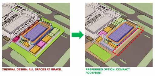 courts down to one and a half basketball courts (49’ x 85’), the nine pickleball courts were cut down to six pickleball courts, and three volleyball courts were untouched. The 130-metre walking track around the perimeter of the gymnasium will have three lanes. There were no changes to the plan to add four new, barrier free, dressing rooms in the twin pad arena. The rooms would include barrier free toilets, two showers, one barrier free shower, a private shower and change area and would be large enough for 22 players, compared to the current rooms that only accomodate 19 players and are not accessible.