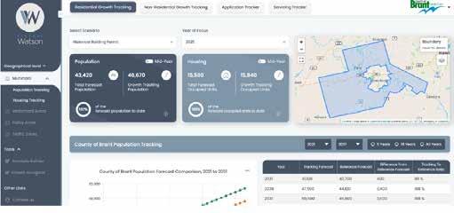 The County of Brant’s new Growth Tracking Dashboard provides real-time insights into population and housing forecasts. Data in this image shows the community is already surpassing its projected growth for 2025.