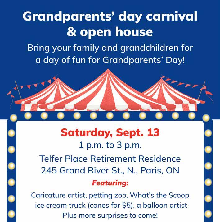 Sensory Spotlight Open House - Sensity invites the community to an open house at its Resource Centre on Friday, Sept. 26, from 10 a.m. to 6 p.m. at 50 Main Street, Paris. Guided tours will showcase the organization’s work, while a local marketplace will feature artwork created by individuals Sensity supports. From 12 to 2 p.m., enjoy a BBQ with burgers and hotdogs available for purchase, with all proceeds benefiting Sensity’s programs and services. Come for a tour, shop the market, or grab a bite — everyone is welcome. Event details: culturedays.ca.