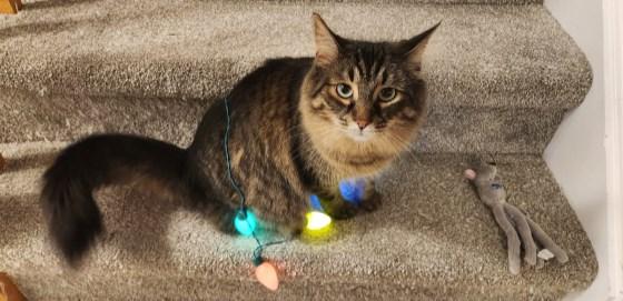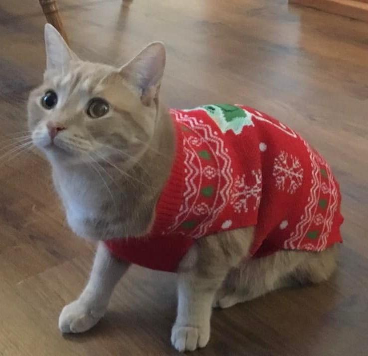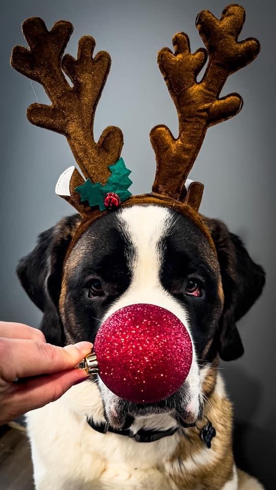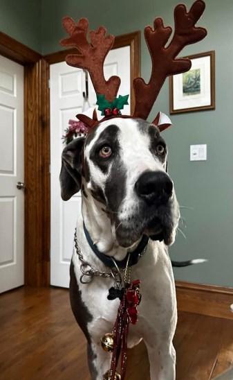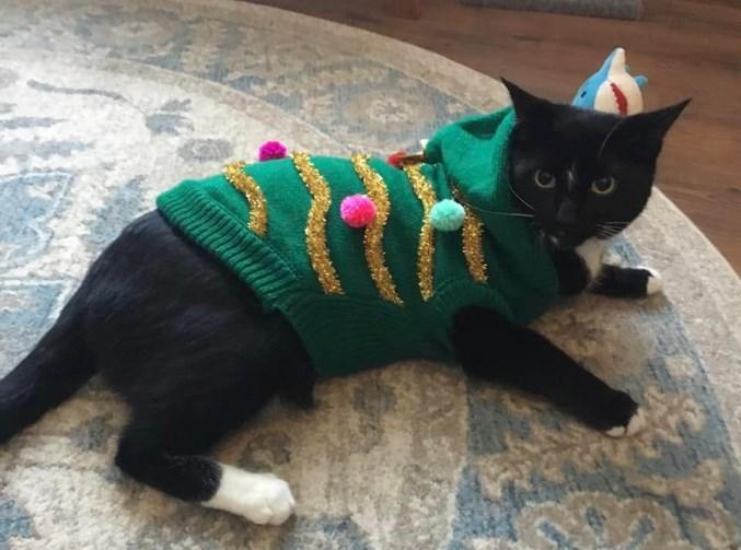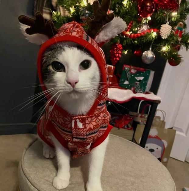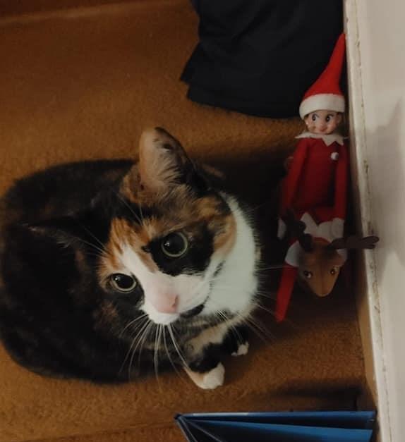 lovingly cornered the Elf! (submitted by Laura Haney) Right: Wilson (aka Knucklehead) didn’t dress up but sure is livin’ the life (submitted by