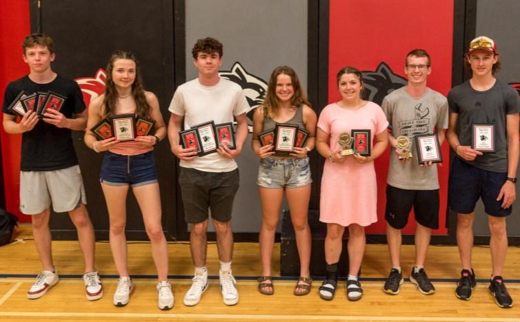Students and staff at PDHS recognized its athletes, award winners and team accomplishments during the annual awards banquet Pictured Left to right Ben Zondag, Maddison Burr, Alex James, Ariel Saulnier, Serena Gambacort, Lucas Balog and Patrick Weldon –all top award winners at PDHS’ athletic banquet.