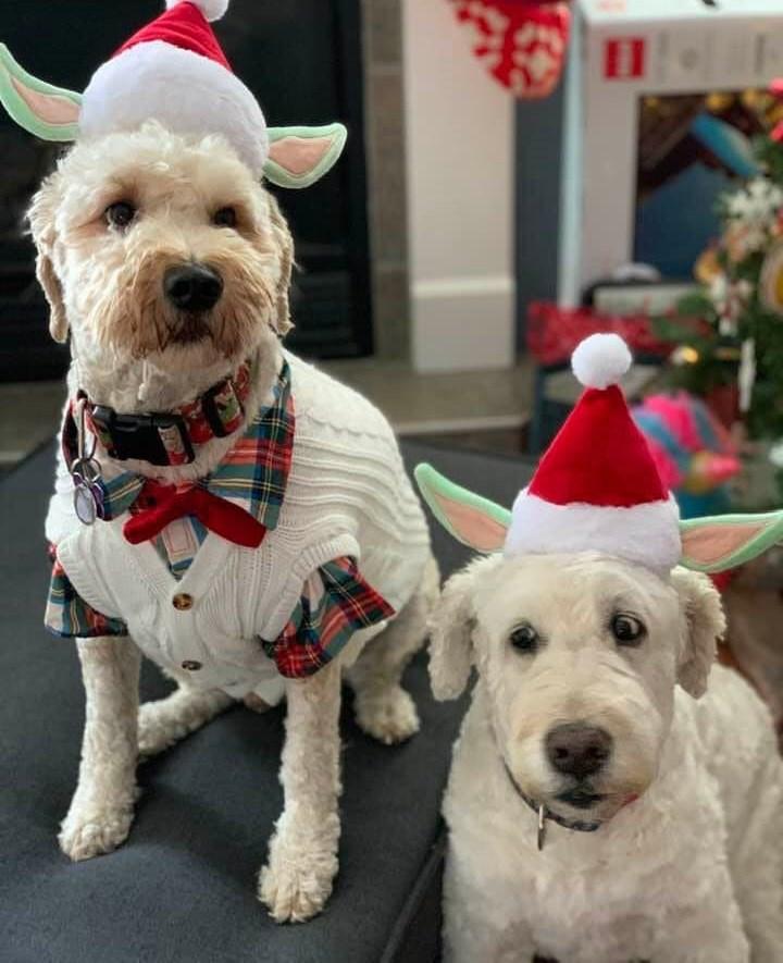 and Owen in a stellar sweater! (submitted by Stacey Labron-Dempsey) Right, Argo knows he is a good boy, one of those presents under the tree is his! (submitted