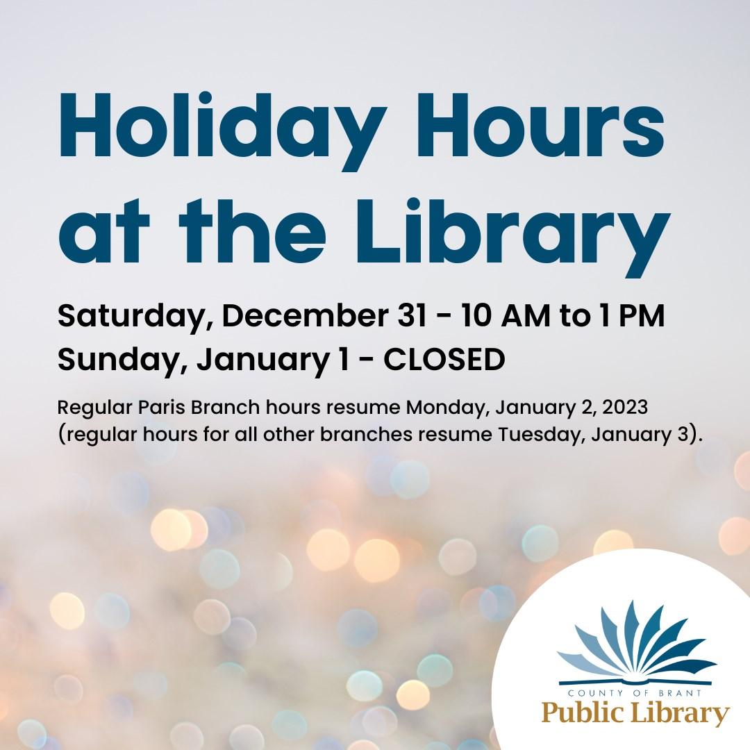 • Saturday, December 31 from 10:00 am - 11:00 am at the Brant Sports Complex