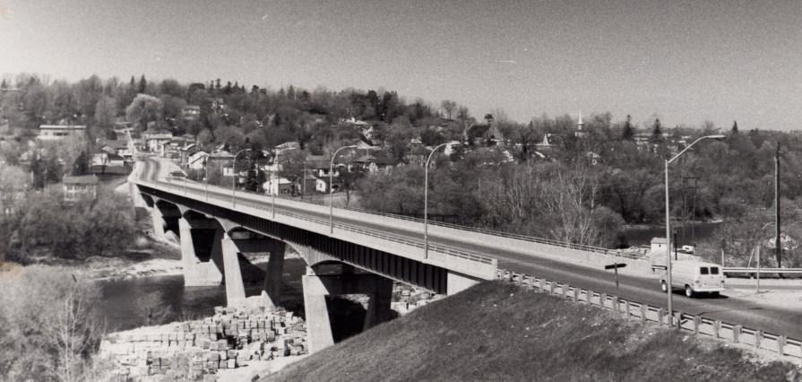 decided to build a new bridge It was built by the Dufferin Materials and Construction Company at a cost of $1,135,820. Another contract $625,000 for steel work was awarded to the Niagara Structural Steel Co Ltd of St. Catharines. The sports story of the year in Paris was when the Paris Mounties won the inter-county Junior “C” hockey championship. Another big event was the District 1 Little League Baseball Tournament
